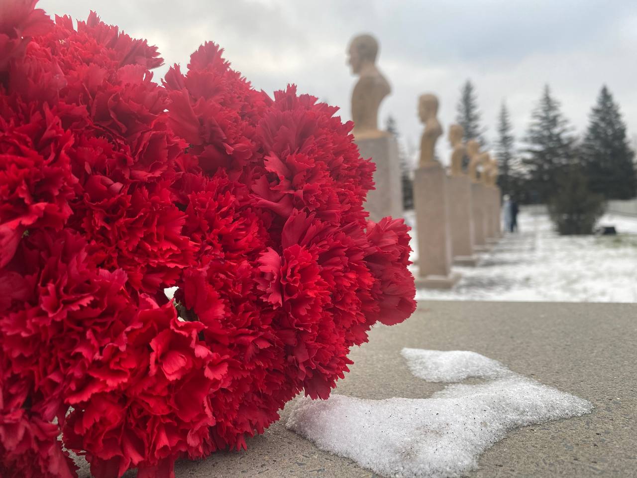 Сегодня в День Героев Отечества студенты Орского гуманитарно-технологического института (филиала) ОГУ совместно с социальным педагогом возложили цветы у мемориала сквера Славы "Вечный Огонь". Красный цвет гвоздик кровью павших лёг на первый снег.