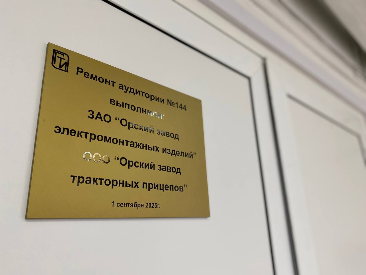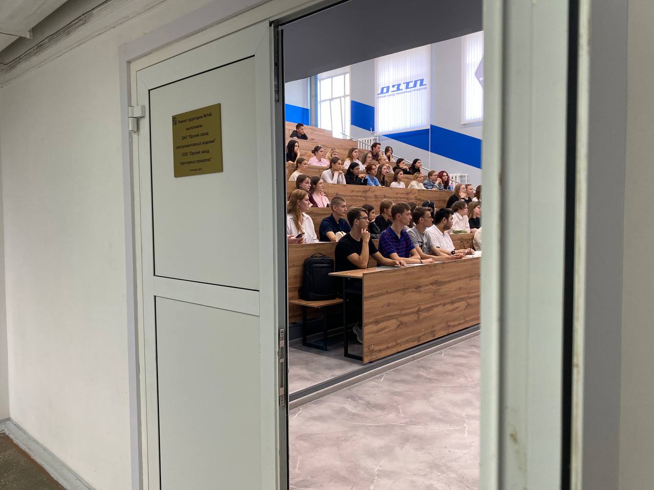 2 сентября со звонком по расписанию на первом занятии студентов ОГТИ (филиала) ОГУ встречают в большой аудитории для потоковых лекций № 144, основательный ремонт которой выполнен ЗАО «Орский завод электромонтажных изделий», ООО «Орский завод тракторных прицепов».
