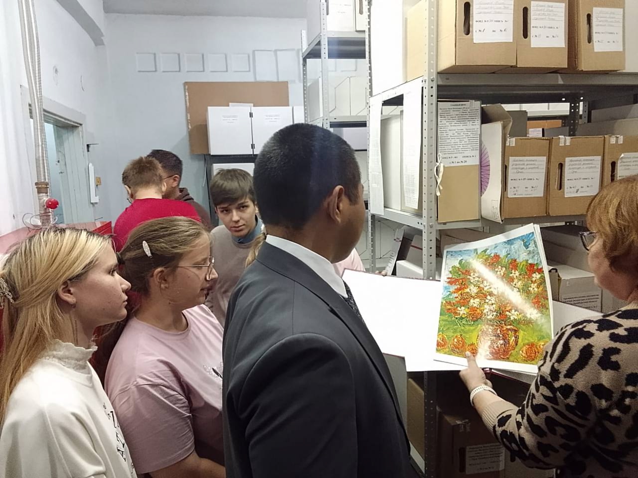 На специальной экскурсии студентов пригласили в хранилище, читальный зал архива, посвятили в историю его прошлого.