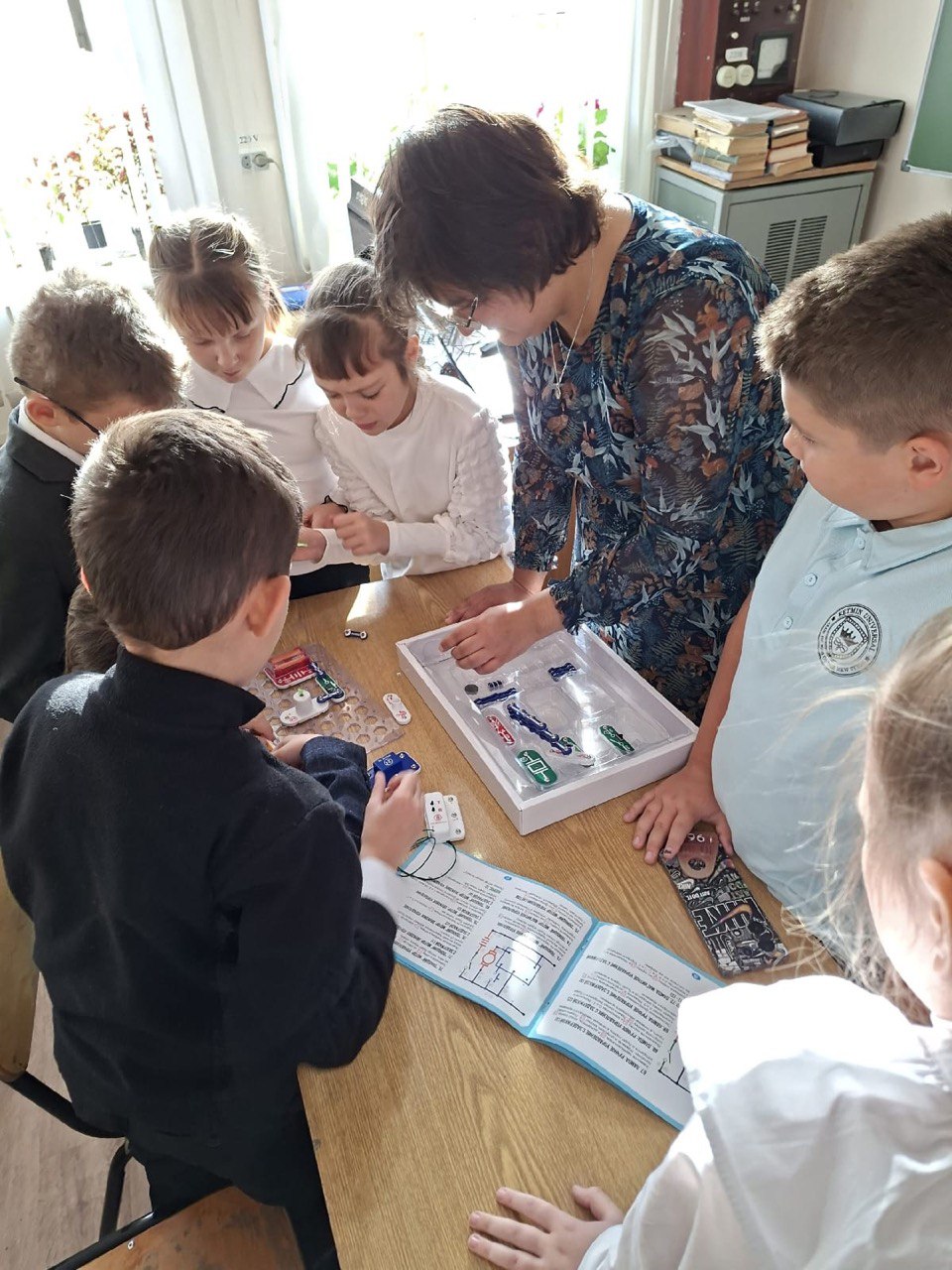 Для ребят были организованы практические мини-занятия по финансовой грамотности, программированию, машиностроению и металловедению: ученики начальной школы самостоятельно создавали 3D-модели, собирали роботов из конструктора, проводили физические опыты с металлами и электричеством.