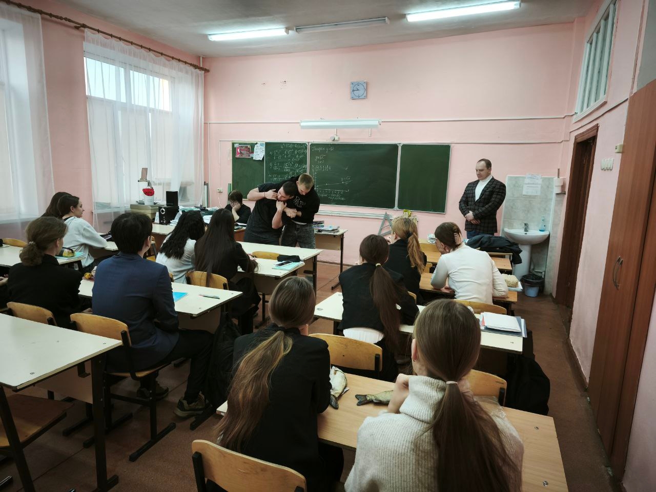 10 декабря состоялась встреча учащихся 11 класса школ 24, 37 и гимназии № 1 с преподавателями ФПО кафедры БЖФК, доцентом Шупаевым А.В. и старшим преподавателем Штаймец А.В., а также студентами 1 курса 25ПО(б)БЖФК Виктором Деккер и Артёмом Искандеровым, для проведения профориентации школьников по определению физических качеств и простейших приемов самообороны.
