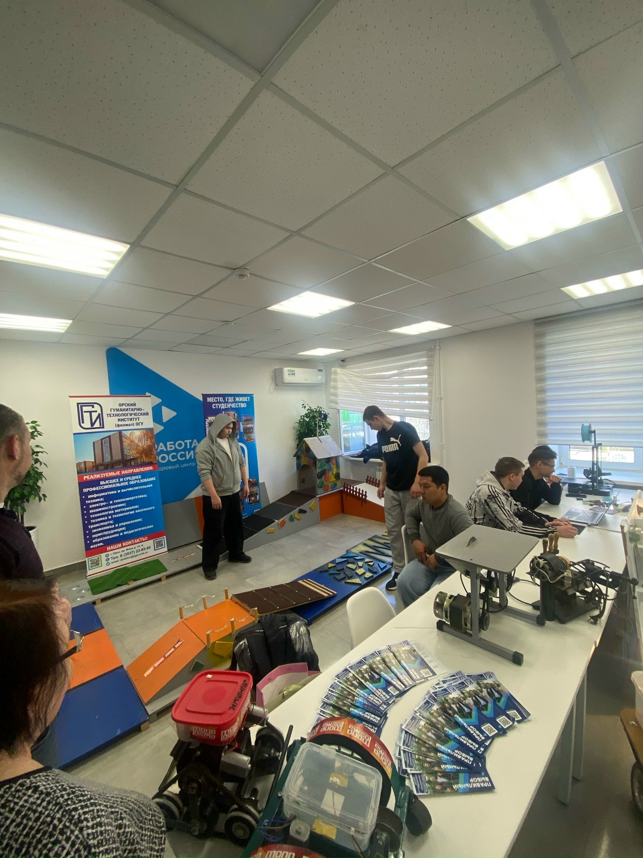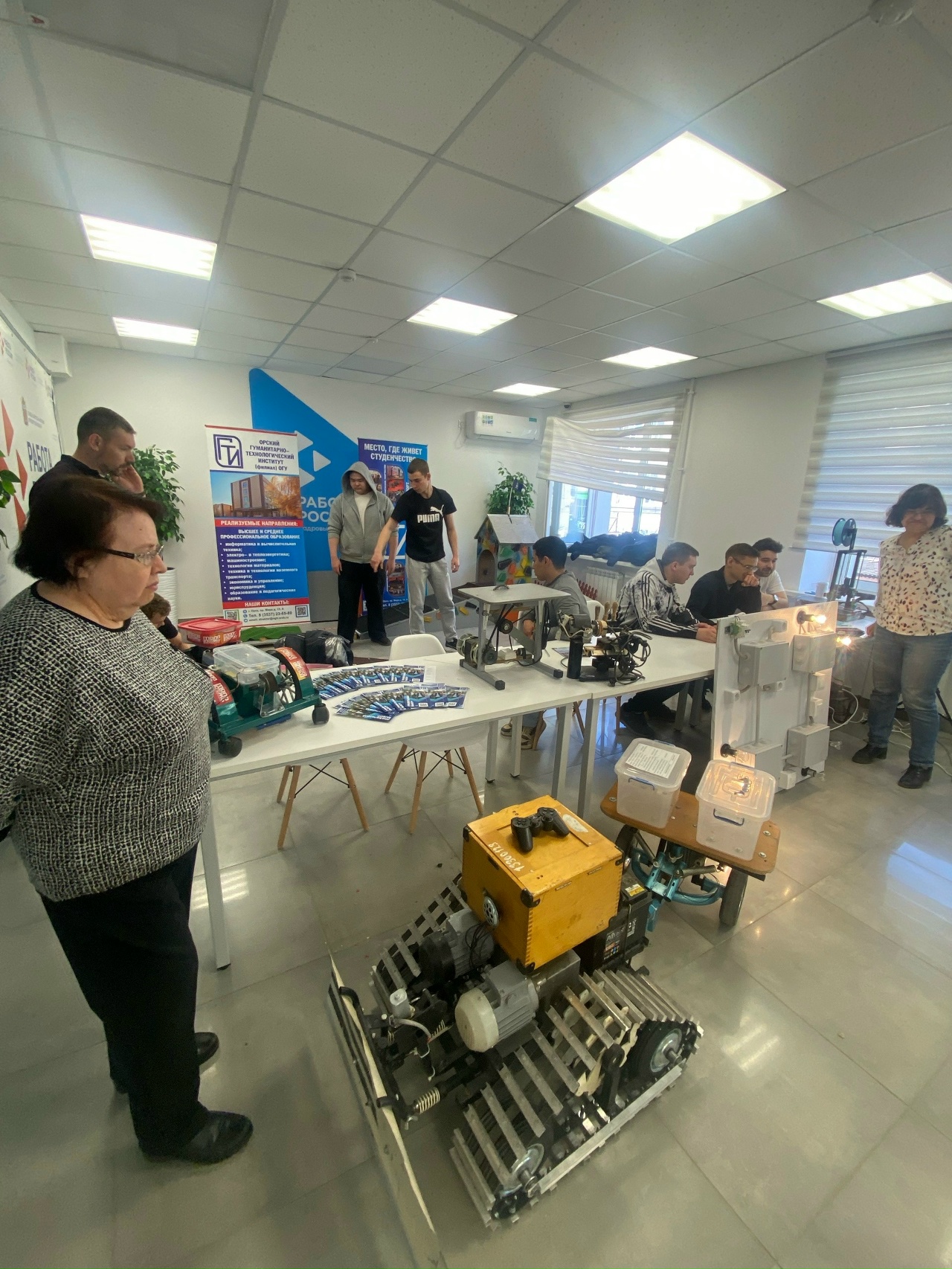 ОГТИ была представлена VR-зона, которая позволила будущим студентам погрузиться в различные профессии. Никакой теории - только реальные приборы и роботы. Ребята смогли наблюдать, как функционирует 3D-принтер и робот на пульте управления.