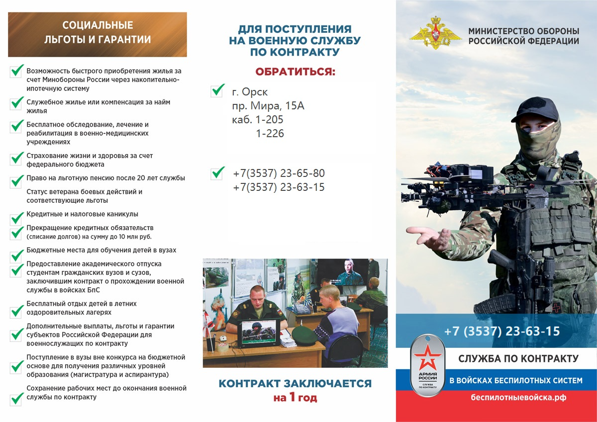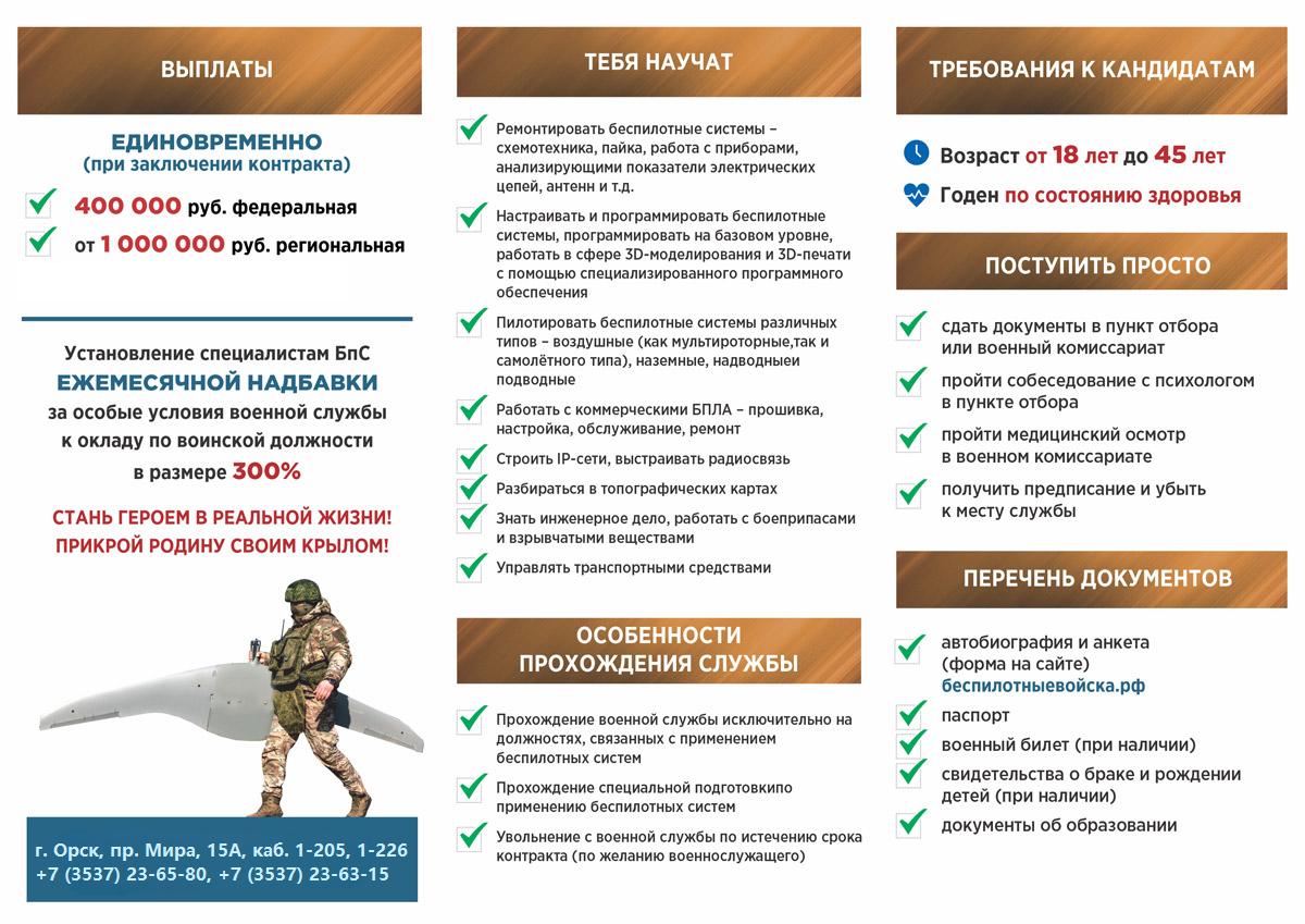 Для прохождения военной службы по контракту в войсках беспилотных систем приглашаются студенты, сотрудники и выпускники в возрасте от 18 до 45 лет