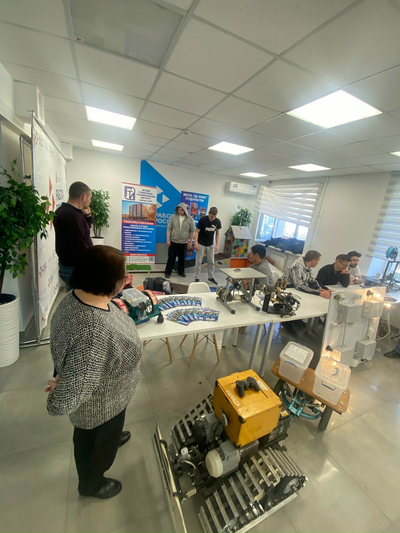 ОГТИ была представлена VR-зона, которая позволила будущим студентам погрузиться в различные профессии. Никакой теории - только реальные приборы и роботы. Ребята смогли наблюдать, как функционирует 3D-принтер и робот на пульте управления.